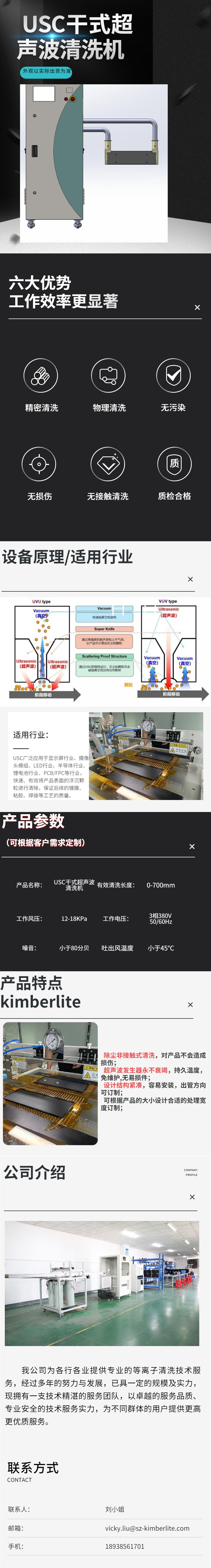干式超聲波清洗機USC可以清洗各種表面復雜的產品,采用無水無接觸的清洗方式,廣泛運用于于顯示屏行業、攝像頭模組、LED行業、半導體行業、鋰電池行業、PCB/FPC等行業,快速、有效將產品表面的浮沉顆粒進行清除,保證后續的鍍膜、粘膠、焊接等工藝的質量。