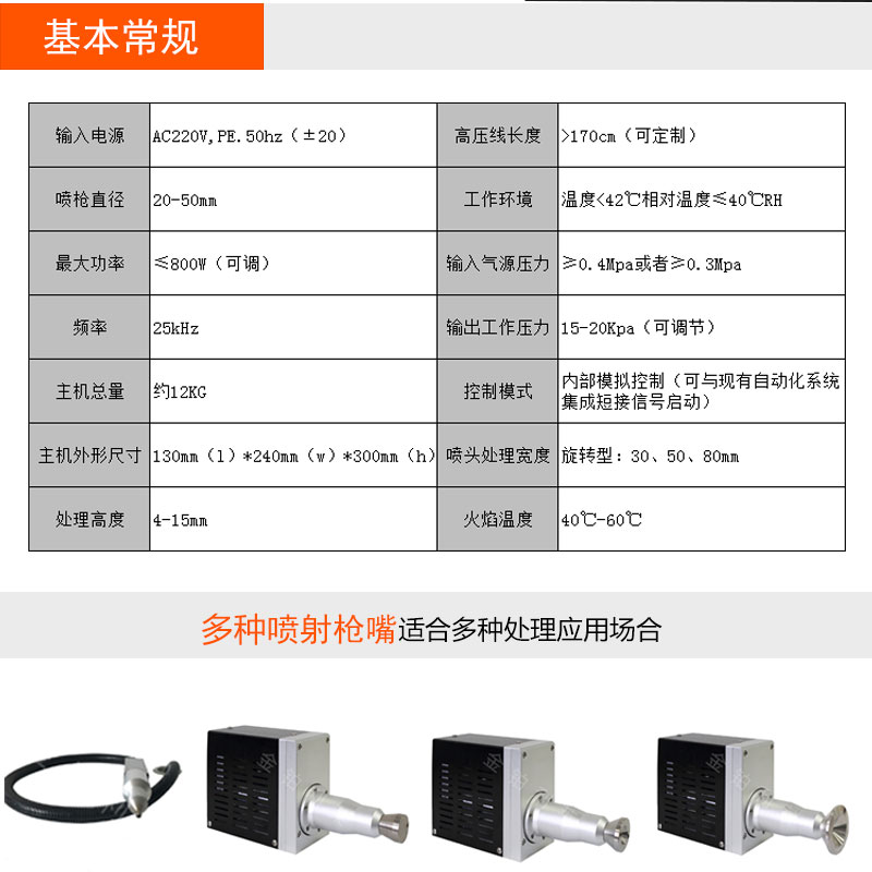 (1)采用低溫等離子體對物體表面,進行等離子處理,等離子處理的面積大小可以根據客戶產品的實際,配合適的槍頭,如2mm-80mm的直噴槍頭或旋轉槍頭
